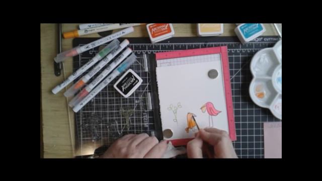 Showing the use of a stencilled background of feathers for these fun Flopsy Birds which are watercoloured using Zig Brushes. All the details on my blog at http://www.aplaceforkia.com/2018/03/my-sweet-petunia-misti-and-ink-blot.html