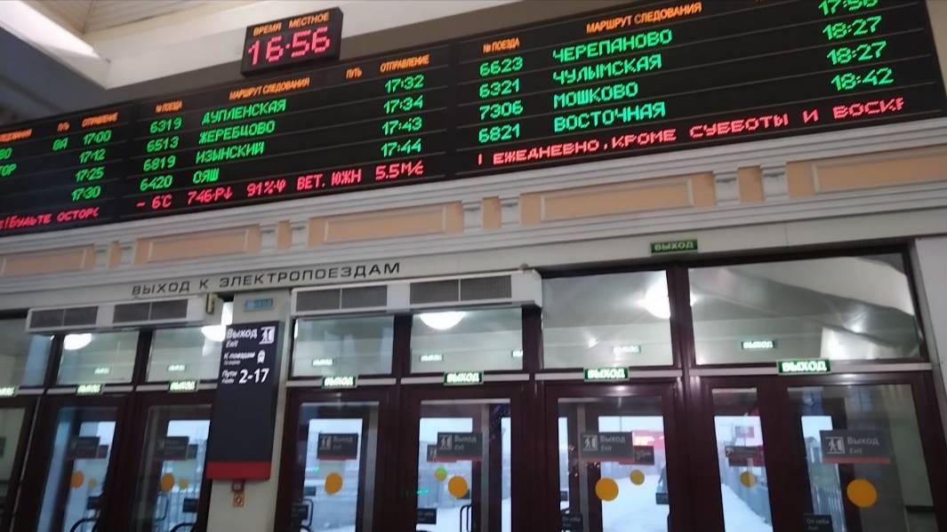 Табло пригородного вокзала Новосибирска, г.Новосибирск, 03.01.2025 в 16:57