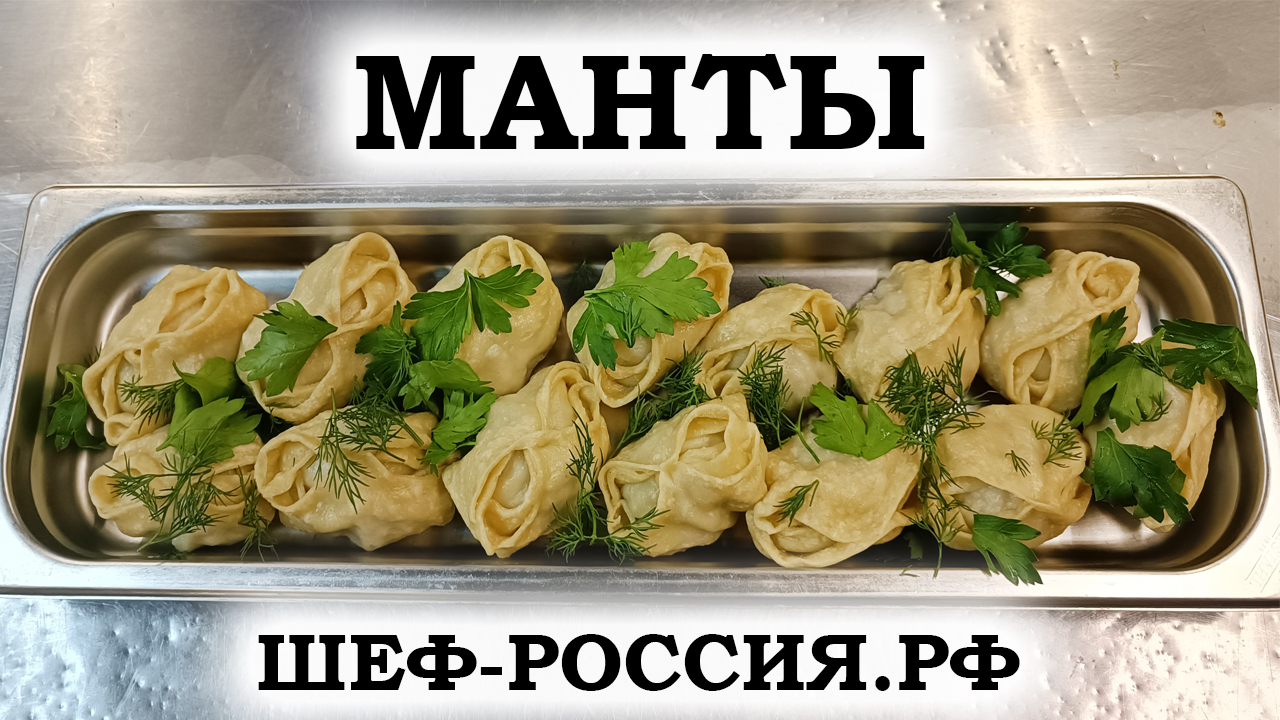 Как приготовить манты: манты: книги, ттк, рецепты, начинки, лепка, варка, все можно скачать на сайте Шеф-Россия.рф. Манты — традиционное блюдо средней Азии, Казахстана, Турции, Монголии, Узбекистана и других стран. Готовятся они из тонко раскатанного теста с начинкой, чаще всего, из мелко нарубленного мяса. Однако различные народы их начиняют разнообразными продуктами. Делают манты на пару, а подают в горячем виде. Классическое тесто для домашних мантов состоит из 3 компонентов в определеных пропорциях: мука (500 г), вода (250 г), соль (1 ч.л.). Но есть и другие виды теста, например, заварное, на молоке, на кефире, с яйцами. Чтобы тесто получилось высокого качества, его надо тщательно и интенсивно замешивать. Некоторые хозяйки его даже «отбивают», чтобы придать лучшую гладкость и эластичность. Как было сказано выше, классическая начинка для мантов — мясо с большим количеством лука и жира. Лук придает сочность и его должно быть треть от всего объема начинки. В качестве жира берут курдючное или свиное сало. Оно в процессе варки мантов вытапливается и отдает начинки свой сок. Мясо можно перекрутить на мясорубке, что облегчает работу. Но настоящие манты готовятся только с мясом нарезанным кубиками, т.е. рубленным. Можно мясо перекрутить через крупную сетку мясорубки, но такой фарш потеряет большую часть соков и превратится в плотную субстанцию. Однако с данным блюдом можно импровизировать. И в тесто можно завернуть все, что угодно. Например, есть рецепты постных мантов с тыквой, с грибами, с картошкой, с капустой. Не менее популярны манты с курицей, манты с рыбой, манты с сыром. Также можно комбинировать несколько продуктов для одной начинки. Готовят манты всегда на пару. Для этого используют мантоварку, также хорошо подойдет пароварка, мультиварка или старый способ варки на пару, как, кастрюля с ситом. Посуду для варки мантов необходимо смазать маслом, а сами манты уложить, чтобы они не соприкасались друг с другом. Еще иногда их обжаривают на сковороде. Лепить манты можно несколькими способами. Классический вариант формовки, к которому все привыкли — два окошка. По центру овального куска теста выкладывают начинку и скрепляют два противоположных края. Затем к существующему «узелку» поднимают противоположные края и их скрепляют. Образовавшиеся «хвостики» попарно соединяют в кольцо. Самый быстрый способ лепки — юбка в складку. Берут круглую заготовку в центре с начинкой и с одной стороны приподнимают тесто, делая небольшую складку. Дальше, от этого защипа, плиссировкой собирают остальное тесто. Романтический и эффектный вариант подачи мантов — розы. Раскатанное тесто для мантов нарезают полосками шириной по 5 см. Можно для красоты использовать нож с волнистым краем. По длине полосы выкладывают тонкий слой начинки и полосы сворачивают вдоль пополам. Однако некоторые кулинары этот способ формовки не используют, считая, что «открытый» вид позволяет выпариваться сокам, которые должны присутствовать в начинке. Способ «коса» — изысканный и необычный. Берут круглую основу по центру с начинкой и поочередно складывают боковые части вовнутрь. Это не полный перечень, как можно сформировать манты. Есть множество других вариаций, как четыре лепестка, треугольники, мешочки, конвертики и прочие способы, которые хозяйка сама придумает. Манты по-узбекски Ма
