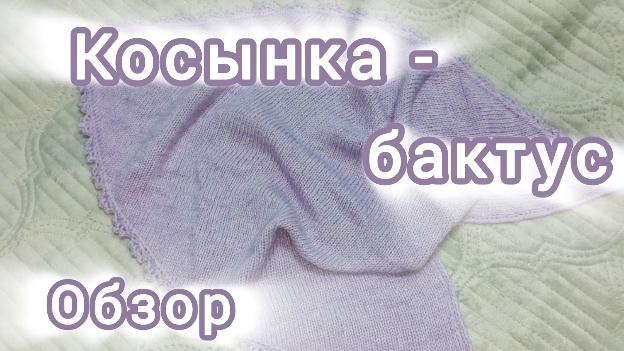 Обзор косынки-бактуса связана спицами и обвязана крючком ажурным узором