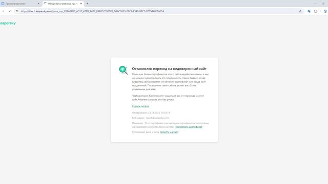 Обнаружена проблема при проверке сертификата - Google Chrome 2025-11-23 13-33-54