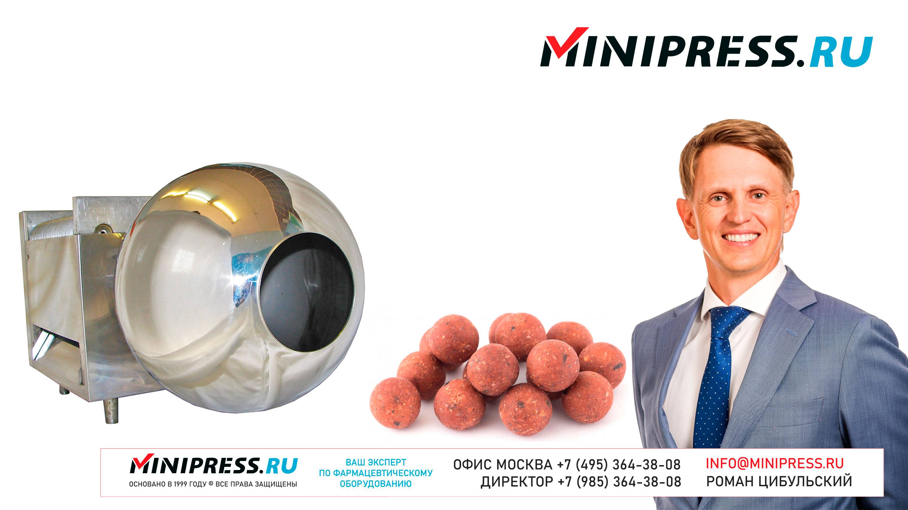 Машинка для производства бойлов BR-10 https://Minipress.ru/katalog/ Фармацевтическое оборудование. Специалисты в фармацевтическом оборудовании и технологиях производства лекарств. Более 20 лет оказываем нашим клиентам помощь в выборе, поставке, наладке различного фармацевтического оборудования! Вы в поиске надежного поставщика оборудования? Мы предоставим вам лучший сервис 24/7. Собрана лучшая команда профессионалов в фармацевтической отрасли и налажены стабильные связи с лучшими производителями. Мы не только продаем, но и производим многие модели оборудования Директор компании Минипресс Роман Цибульский Поставка фармацевтического оборудования в Россию Пишите: info@minipress.ru Телефон +7(495)364-38-08; Мобильный +375(29)308-00-00 Россия, Москва Skype: RomanTsibulsky; ICQ: 310-134-490 Подписывайтесь на наш видео канал на Youtube https://youtube.com/user/wwwMinipressru Обновленный сайт https://Minipress.ru Каталог оборудования https://Minipress.ru/katalog/ МЫ В СОЦИАЛЬНЫХ СЕТЯХ G+ https://plus.google.com/+RomanTsibulsky/ FB https://facebook.com/roman.tsibulsky YOUTUBE https://youtube.com/user/wwwMinipressru IN https://ru.linkedin.com/pub/roman-tsibulsky/a6/933/661 БОЛЬШОЙ КАТАЛОГ ФАРМАЦЕВТИЧЕСКОГО ОБОРУДОВАНИЯ https://minipress.ru/katalog/ Постоянно обновляемый каталог различного фармацевтического оборудования с фотографиями, описаниями, видео и ценами. ПЕРСОНАЛЬНЫЙ МЕНЕДЖЕР 24 ЧАСА https://minipress.ru/katalog/ Вы общаетесь по всем вопросам, с момента первой консультации и до получения оборудования, с одним специалистом. СПЕЦИАЛИСТЫ И ТЕХНОЛОГИ https://minipress.ru/katalog/ Имеем обширные связи в фармацевтической среде, найдем любого специалиста, поможем с освоением оборудования и технологий. ОБСУЖДЕНИЕ ВАШИХ ИДЕЙ ПО ПРОИЗВОДСТВУ ПРОДУКЦИИ https://minipress.ru/katalog/ Поможем в оценке ваших идей. Большой опыт в организации различных производств и выпуске продукции. Ценные советы. ФАРМАЦЕВТИЧЕСКОЕ ОБОРУДОВАНИЕ Мы поставили перед собой задачу, помогать нашим клиентам в правильном выборе фармацевтического оборудования. Многолетний опыт подобной деятельности показывает, что многие клиенты сталкиваются, в первую очередь, с непониманием технологического процесса. Покупка оборудования должна быть финальной точкой после подробного обсуждения задачи, консультацией с производителем оборудования, отправкой сырья и материалов на фабрику, тестирования в работе. ДЛЯ ТАБЛЕТОК https://minipress.ru/katalog/category/farmacevticheskoe_oborudovanie/ Смешивание порошков, гранулирование, прессование, обеспыливание, покрытие оболочками, фасовка, упаковка, счет, нанесение логотипов ДЛЯ ЖЕЛАТИНОВЫХ КАПСУЛ https://minipress.ru/katalog/category/farmacevticheskoe_oborudovanie/kapsulyatory-dlya-tverdyh-zhelatinovyh-kapsul/ Фасовка порошков и масел, обеспыливание, счет и фасовка, упаковка, нанесение логотипов. ФАСОВКА И УПАКОВКА https://minipress.ru/katalog/category/upakovochnoe_oborudovanie/ Упаковка в пластиковые и стеклянные флаконы, блистер, фольгу, ламинированную бумагу, стеклянные ампулы, саше, стрипы, тубы, тюбики, контурную ячейку. ТЕХНОЛОГИЧЕСКОЕ https://minipress.ru/katalog/category/eksperimentalnoe-oborudovanie/ Лабораторное, аналитическое, подготовительное, отдельные машины и линии под ключ. СФЕРЫ ДЕЯТЕЛЬНОСТИ Наша компания занимается множеством направлений фармацевтического бизнеса! Предлагаем Вам посетить страницы нашего сайта https://www.Minipress.ru по различным специализациям. ОБОРУДОВАНИЕ ДЛЯ НАКЛЕЙКИ ЭТИКЕТОК НА БУТЫЛКИ АМПУЛЫ ФЛАКОНЫ https://minipress.ru/katalog/oborudovanie-s-otzyvami/oborudovanie-dlya-naklejki-etiketok-na-butylki-ampuly-flakony/ Автоматическое этикетировочное оборудование для этикеток на клеевой основе БЛИСТЕРНЫЕ МА