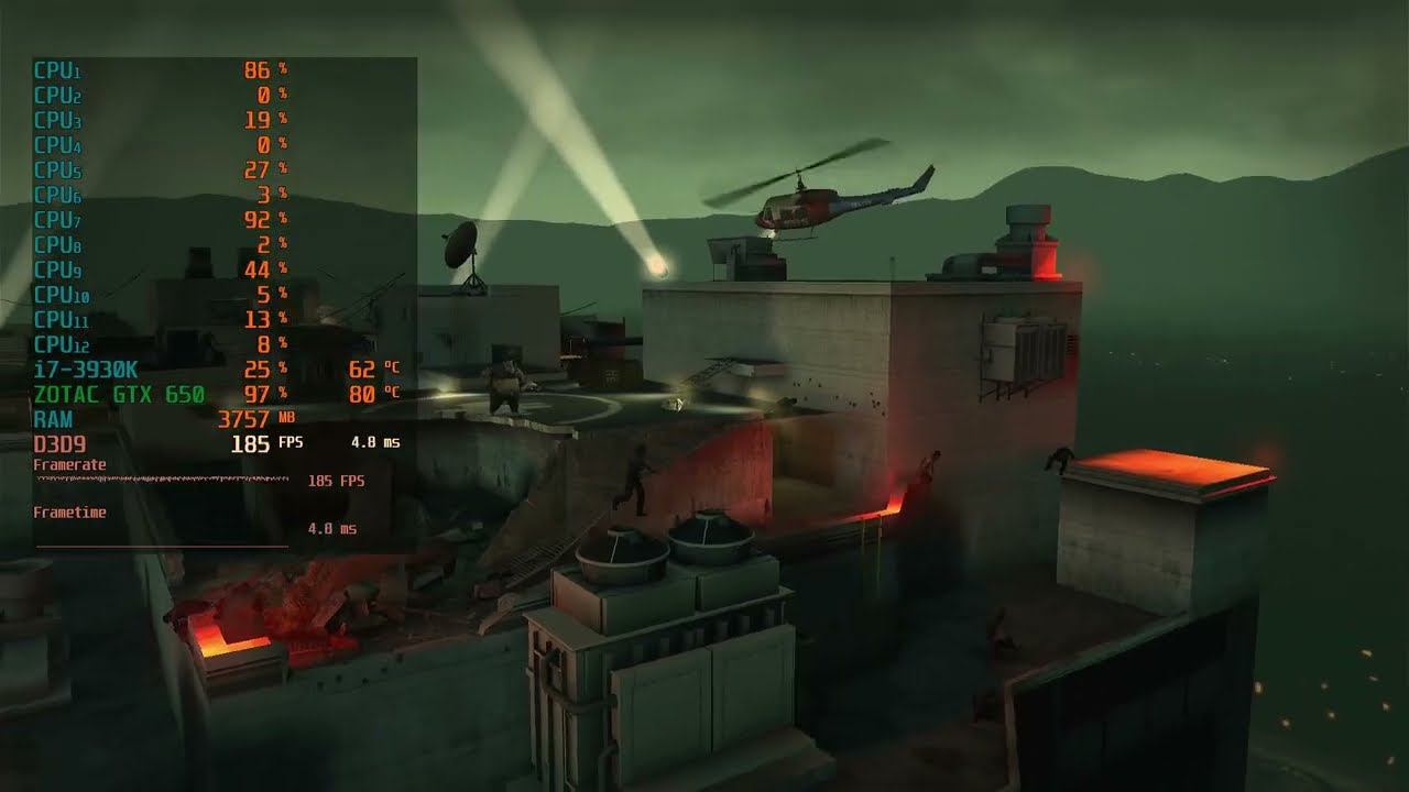 Game: Left 4 Dead Сomputer characteristics: Socket: LGA 2011 Motherboard: Asus Sabertooth X79 Processor: i7 3930K 3.20GHZ RAM: HYPER X 16GB DDR3-DIMM 1600 GPU: ZOTAC GTX 650 GDDR5 2GB ROM: SSD 128GB+HDD 500GB Video in 1920x1080 resolution. Operating system: Windows 10 Pro