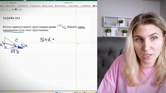 Катеты прямоугольного треугольника равны корень 15 и 1. Найдите синус наименьшего угла этого треугольника. ТГК https://t.me/laranam ВК https://vk.com/laraname ОК https://ok.ru/group/70000033283777 #репетиторматематика #огэ #репетиторпоматематике #огэ #математика #репетитор