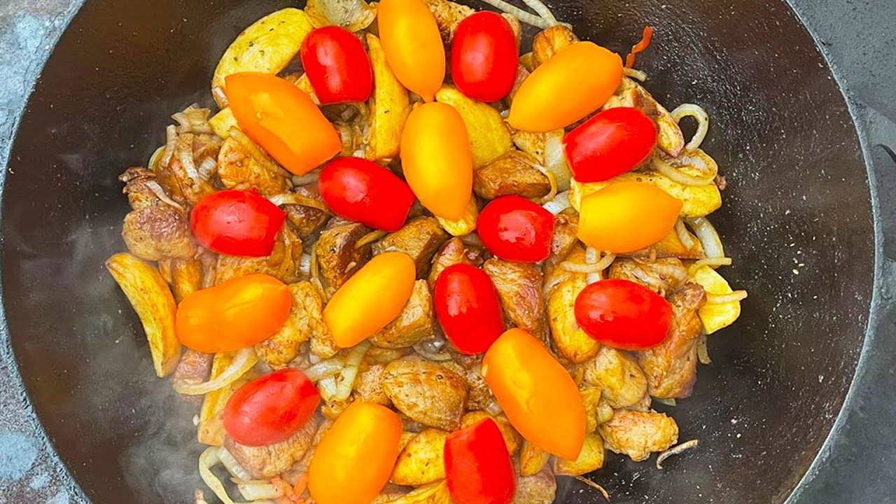 КАК ПРИГОТОВИТЬ ВКУСНЫЙ ОДЖАХУРИ МЯСО С КАРТОШКОЙ В КАЗАНЕ НА КОСТРЕ
