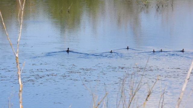 Лысуха в выводком птенцов, наблюдение птиц в Новгородской области, 16 июня 2024
