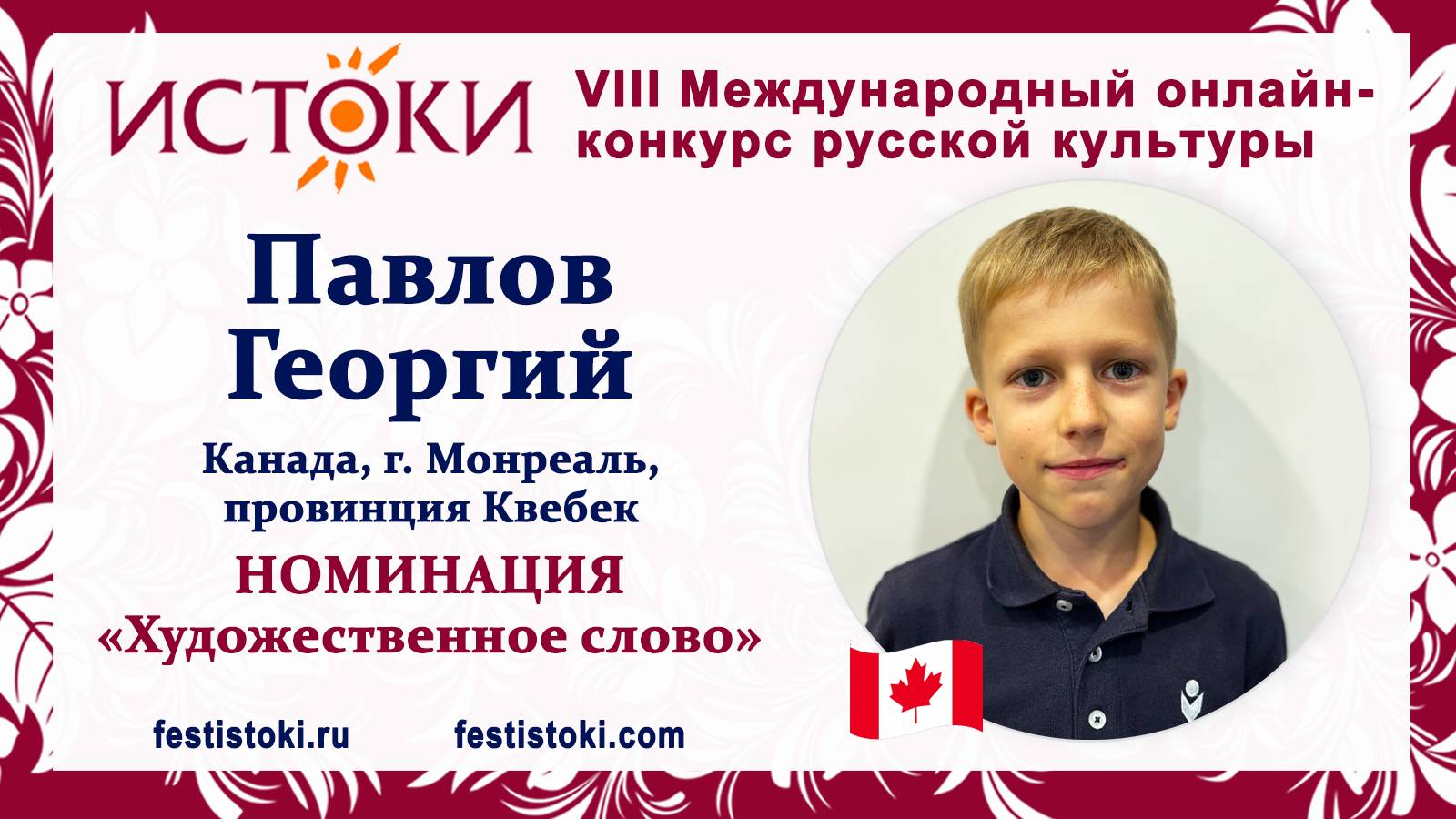 Участник VIII Международного онлайн-конкурса русской культуры "Истоки". Номинация "Художественное слово". Басня "Медведь у пчел". Автор И.А. Крылов. Сайт: festistoki.ru / festistoki.com E-mail: festistoki@mail.ru