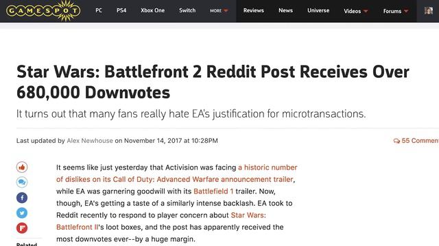 Star Wars Battlefront II's loot box system and microtransactions have garnered international attention at this point. Here's a rundown in case you haven't been keeping up. Official single player story scene: https://www.youtube.com/watch?v=D2gTfASZtbA Watch PC ultra settings gameplay: https://www.youtube.com/watch?v=ntWnf9kjIok Check out the first in-engine trailer for Battlefront II: https://www.youtube.com/watch?v=y2TWYVZvcvw Follow Star Wars: Battlefront II at GameSpot.com! https://www.gamespot.com/star-wars-battlefront-ii/ Official Site - https://www.ea.com/games/starwars/battlefront/battlefront-2