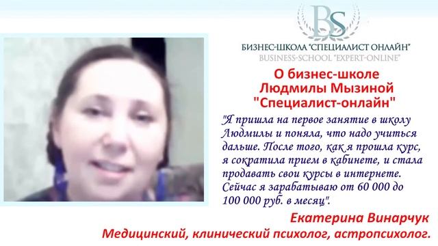 Мнение о бизнес школе Л.Мызиной "СПЕЦИАЛИСТ ОНЛАЙН" выпускницы Екатерины Винарчук