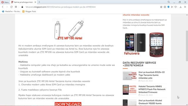 Requirements - ZTE MF190 Unlocked firmware Download firmware at https://fahusvera.blogspot.com/2021/03/namna-ya-kufungua-modem-ya-zte-mf190.html How to unlock MF190 Airtel Tanzania 1. Plug in your modem to computer with unaccepted SIM Card 2. Run ZTE MF190 unlocked firmware then click on Start, click on next, leave it until it finishes. 3. When finished, click on Finish Visit https://fahusvera.blogspot.com/p/watu-waliopata-huduma-zetu.html for help #MF190 #ZTE #Unlock #Zain #Airtel #Tanzania #Kufungua #modem Jinsi ya kuunlock ZTE MF190 itumie mitandao yote, namna ya kuunlock ZTE MF190 Zain itumitue mitandao yote, jinsi ya kufungua ZTE MF190 Zain Tanzania mtandao wowote, jinsi ya kuunlock modem ya Airtel ZTE MF190, namna ya kuunlock modem ya Airtel ZTE MF190, ZTE MF190 Airtel Tanzania, how to unlock ZTE MF190, how to unlock ZTE190 Zain Tanzania, how to unlock ZTE MF190 Airtel, jinsi ya kuunlock ZTE MF190 Airtel Tanzania, ZTE MF190 firmware