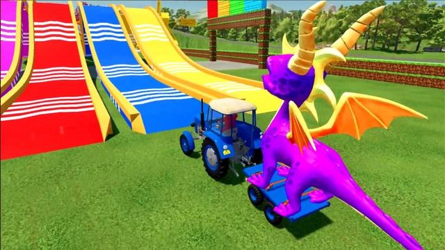 КРАСОЧНЫЕ ТРАКТОРА ПЕРЕВОЗЯТ ДРАКОНОВ НА ИГРУШЕЧНОЙ ФЕРМЕ. МУЛЬТИКИ ДЛЯ МАЛЫШЕЙ.