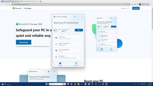 Microsoft PC Manager – набор инструментов для обслуживания, очистки и обеспечения безопасности систем Windows, который поможет вам поддерживать максимальную производительность вашего компьютера. [ Основные возможности Microsoft PC Manager ] Инструменты очистки, менеджер хранилища и процессов: 1️⃣ Инструменты очистки в Microsoft PC Manager позволяют проверить состояние системы и выявить потенциальные проблемы или вопросы, требующие вашего внимания. Системные журналы могут быть очищены, а запускаемыми приложениями можно легко управлять для экономии ресурсов. Кроме того, с помощью кнопки "Boost" в главном окне можно очистить временные файлы и освободить память системы, что, несомненно, пригодится, если у вас старый ПК. 2️⃣ Также имеется встроенный менеджер процессов, который, в отличие от диспетчера задач в Windows, отображает только неиспользуемые процессы, а не все. Вы можете завершить любой из них, чтобы оптимизировать скорость работы системы и улучшить использование оперативной памяти. 3️⃣ Благодаря встроенному менеджеру хранилища вы можете управлять большими файлами или удалять редко используемые приложения для экономии места. Кроме того, Microsoft PC Manager может выполнять глубокий анализ очистки для удаления журналов и ненужных данных из обновлений Windows, Microsoft Defender, кэша браузера или других временных файлов. VK Группа: https://vk.ru/public183207497 Telegram Канал: https://t.me/it_baza_znaniy Предложения по сотрудничеству можете присылать на почту: maksimqwe42@mail.ru