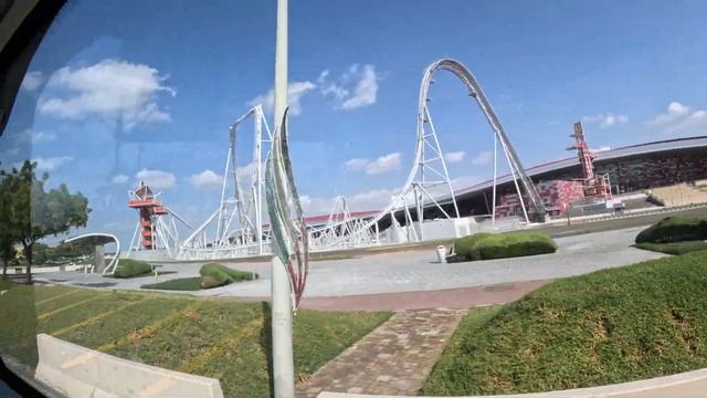 Проезжаем мимо Феррари-Парк в Абу-Даби на бесплатном туристическом автобусе.