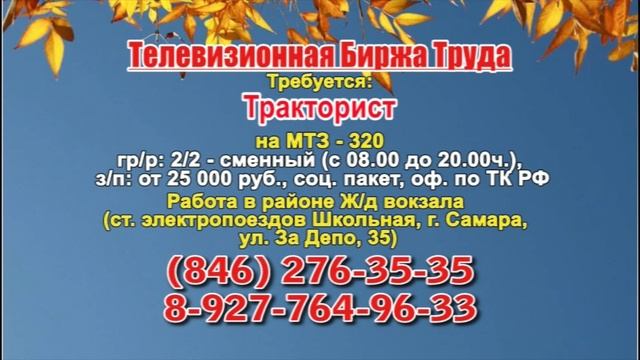Вакансии и телефоны прямых работодателей в специализированной программе по трудоустройству "Телевизионная Биржа Труда" - г.САМАРА, г.ТОЛЬЯТТИ