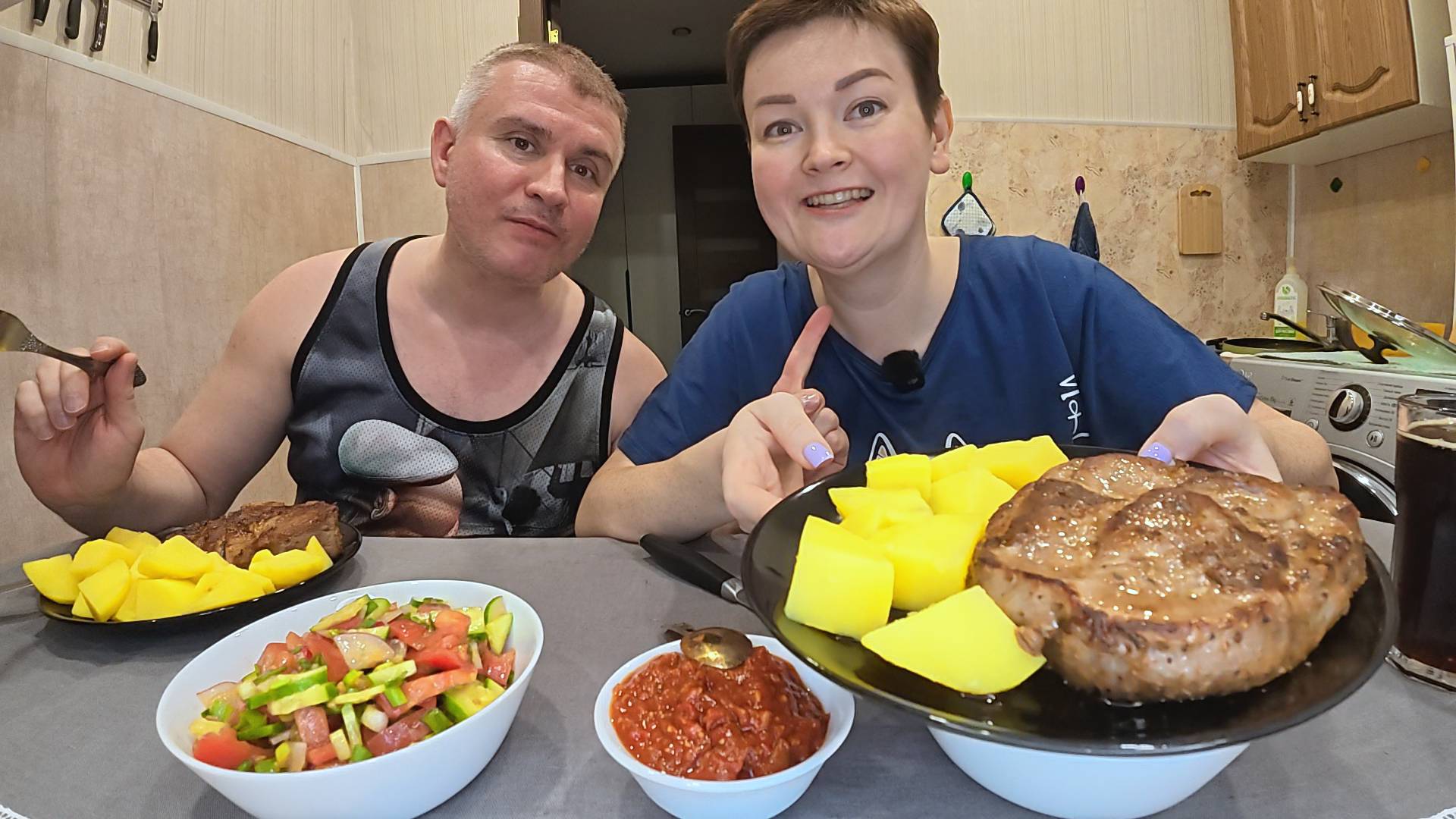 Мукбанг пир ЖИВОТА) ОБЪЕДАЕМСЯ мясом, ОГРОМНЫЕ стейки на НОЧЬ глядя) Вот так ХУДЕЕМ! Семейный ужин