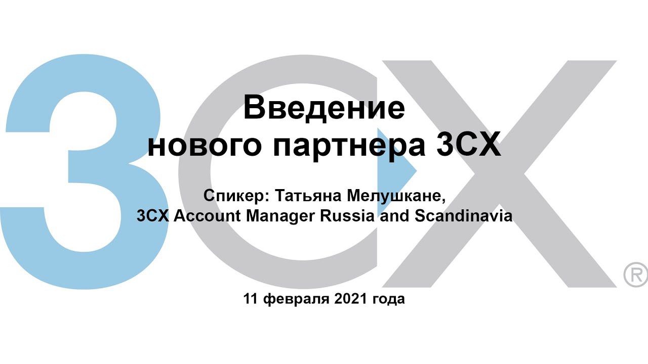 11 февраля 2021 года состоялся первый вебинар из новой серии коммерческих вебинаров компании 3СХ на русском языке. Этот вводный вебинар для новых и потенциальных партнеров 3CX посвящен составлению коммерческого предложения, партнерской программе и партнерскому порталу 3CX. Это поможет начать успешное сотрудничество с компанией 3CX. Спикер: Татьяна Мелушкане, 3СХ Account Manager Russia and Scandinavia (Кипр).
