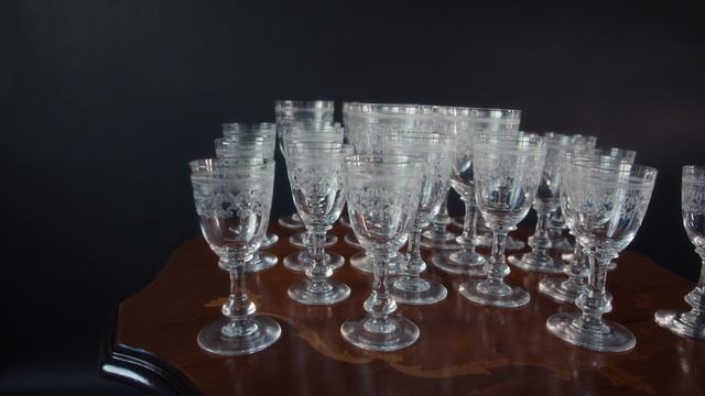 Хрустальные бокалы Baccarat XX века - https://gallerique.ru/tproduct/196925804952-hrustalnie-bokali-baccarat-xx-veka Прозрачные бокалы из высококачественного хрусталя Baccarat с характерным для этой марки рисунком. В набор входят 24 изделия: по 8 штук для каждого вида — вина, ликера и водки. Бокалы не имеют клейма, что указывает на их происхождение до 1936 года. Отличный выбор для коллекционеров и ценителей стеклянного искусства. Для вина Высота: 14,5 см Диаметр: 6,5 см Для ликеров Высота: 12 см Диаметр: 5 см Для водки Высота: 11 см Диаметр: 4,7 см Материал: хрусталь Состояние: отличное винтажное Производитель: Baccarat Страна производителя: Франция Период: начало XX века
