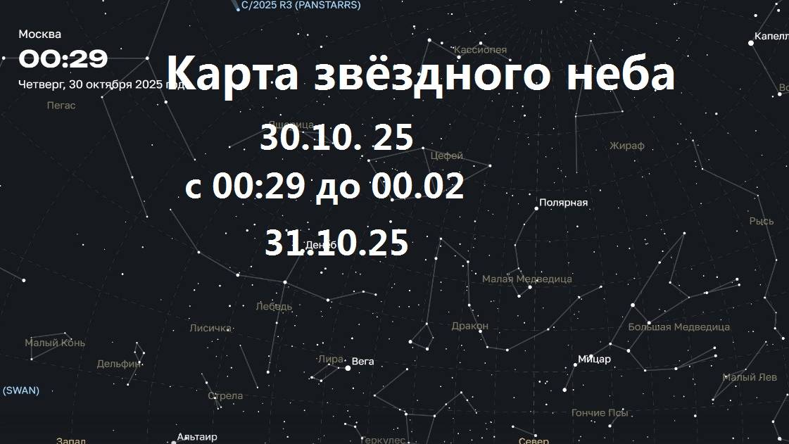 Наука. Астрономия. 30.10.25. Увидим Комету 3l/ATLAS на карте звёздного неба онлайн. Чат.