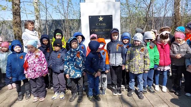 В преддверии самого знаменательного праздника в России - Дня Победы!!! - дети 1,4,7 и 13 групп сходили к памятнику Советскому солдату. Ребята читали стихотворения, посвящённые памяти павших в той страшной войне. Дети 13 группы исполнили песню " Прадедушка ", прославлявшую смелость, мужество и отвагу Советского солдата. В конце мероприятия было возложение цветов в честь всех героев ВОВ.
