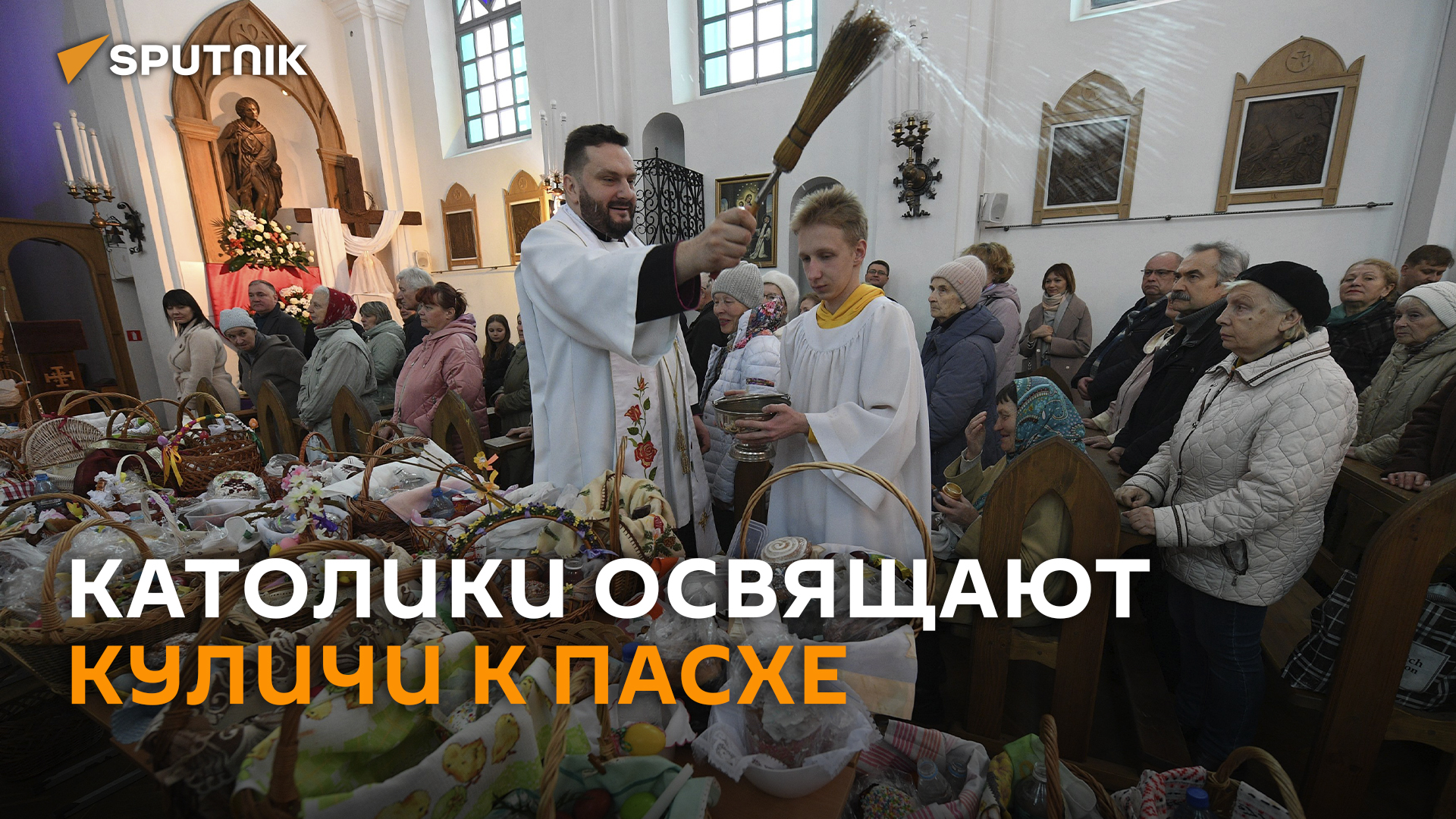Католики освящают куличи к Пасхе в минском костеле Святого Роха