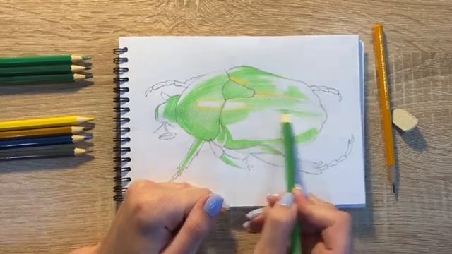 Рисунок цветными карандашами жука скарабея | Поэтапная срисовка для начинающих