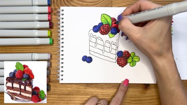 Рисунок скетч маркерами "Пирожное" для скетчбука | Срисовка картинки для начинающих