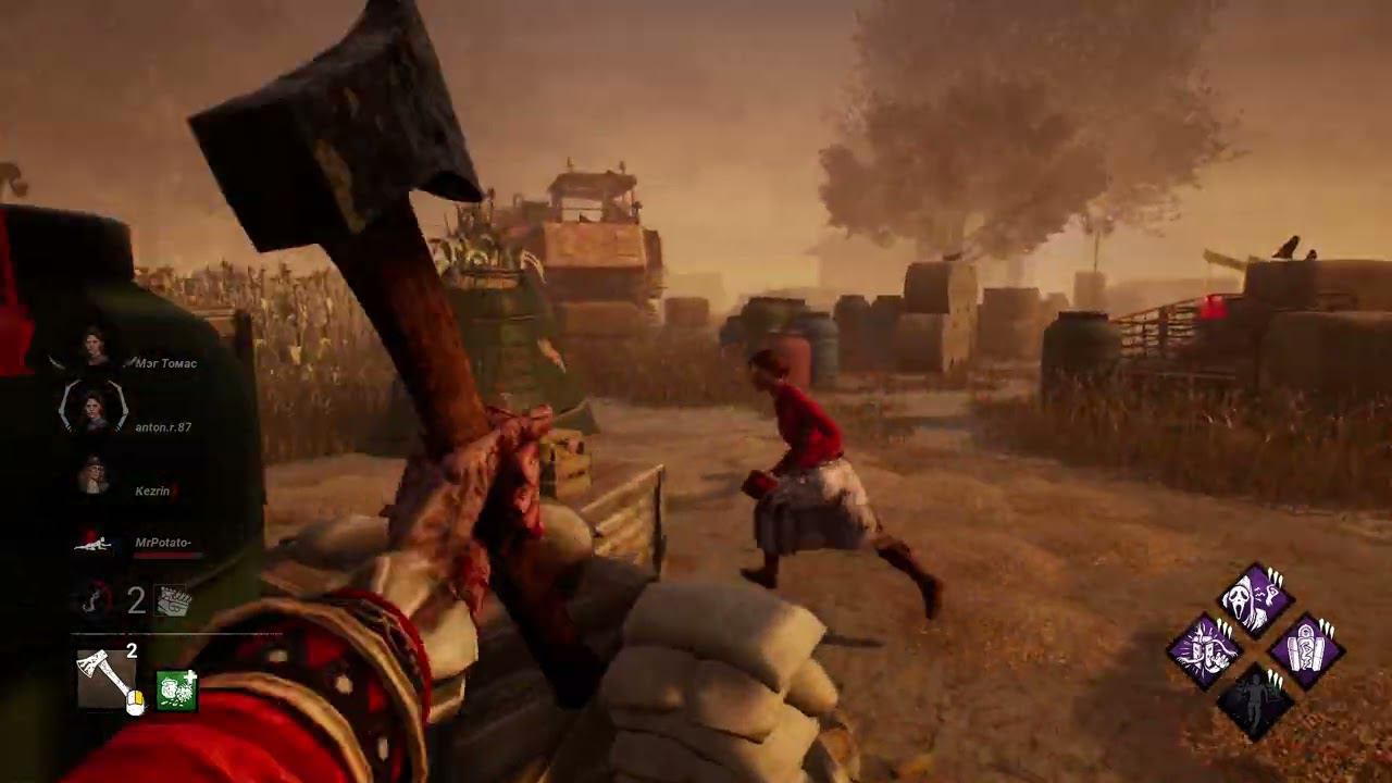 dead by daylight попробуй топором попасть в выжившего 15 раз на охотнице