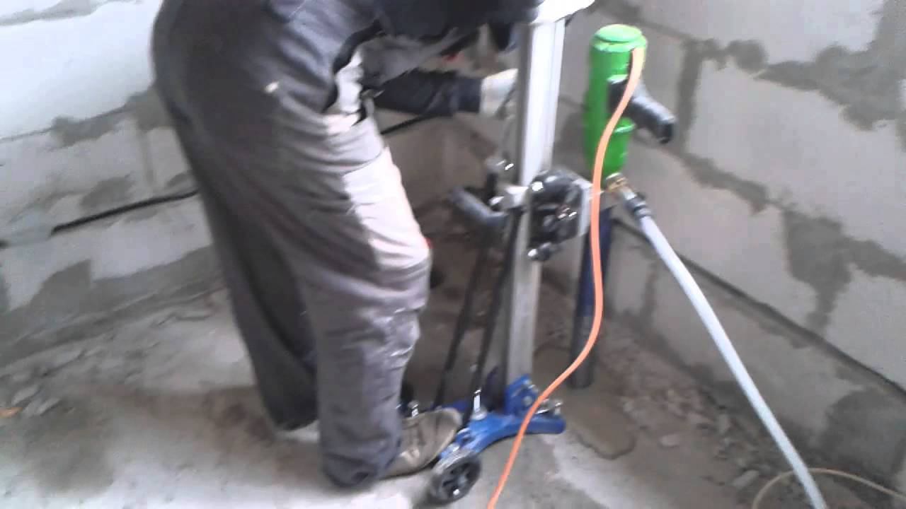 Сверление бетона в Коломне. Алмазное сверление бетона в Коломне. Отверстия под канализацию в фундаментах, под водопровод в плитах перекрытия.
