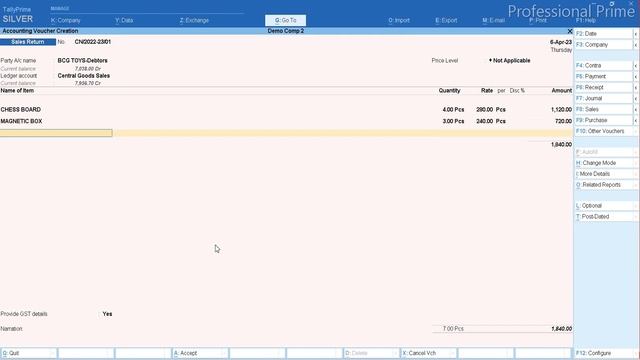 Debit note credit note entry in tally prime 3.0.1 | Sales Purchase Return @professionalprime