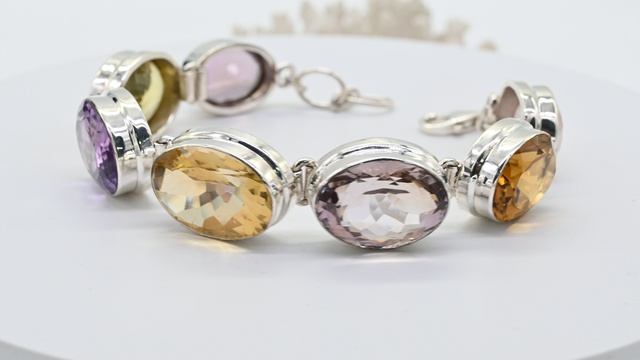 Браслет С925 с самоцветами, 18-20см, 39,5г Арт: с508015
