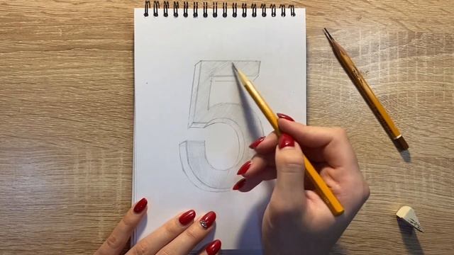 Как нарисовать цифру пять карандашом | Рисунок для начинающих поэтапно
