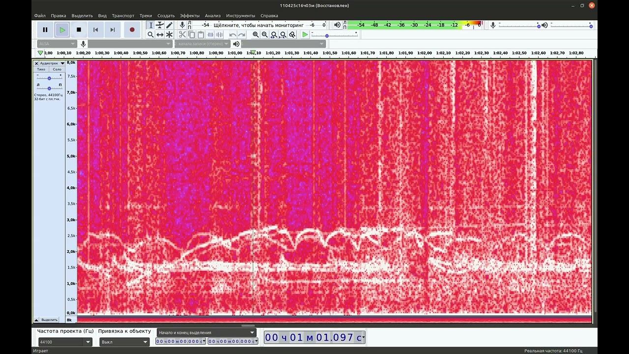 Геомагнитный звук 11-04-2025 старт16:03(UT+3h) 49ч30м51с - ускорено 1000Х - 1 Гц = 1000 Гц