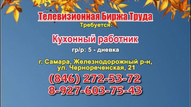 Вакансии и телефоны прямых работодателей в специализированной программе по трудоустройству "Телевизионная Биржа Труда" - г.САМАРА, г.ТОЛЬЯТТИ т/к РЕН-ТВ