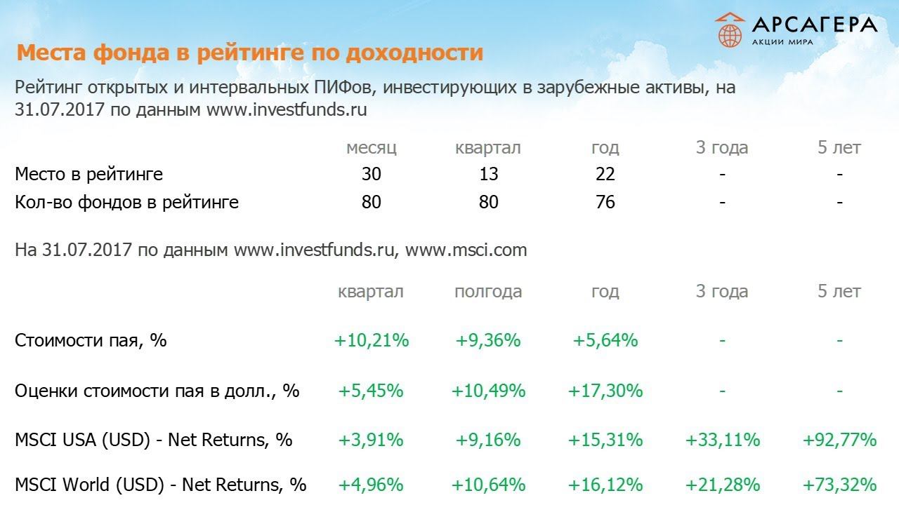 Наши фонды. ИПИФА «Арсагера — акции Мира» Июль 2017