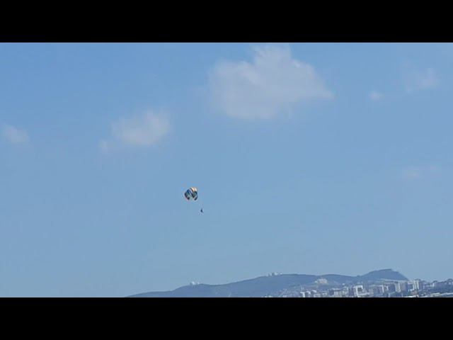 Эффектный полёт на параплане над пляжем пансионата "Джемете" в городе Анапе. #параплан #анапа #джемете
