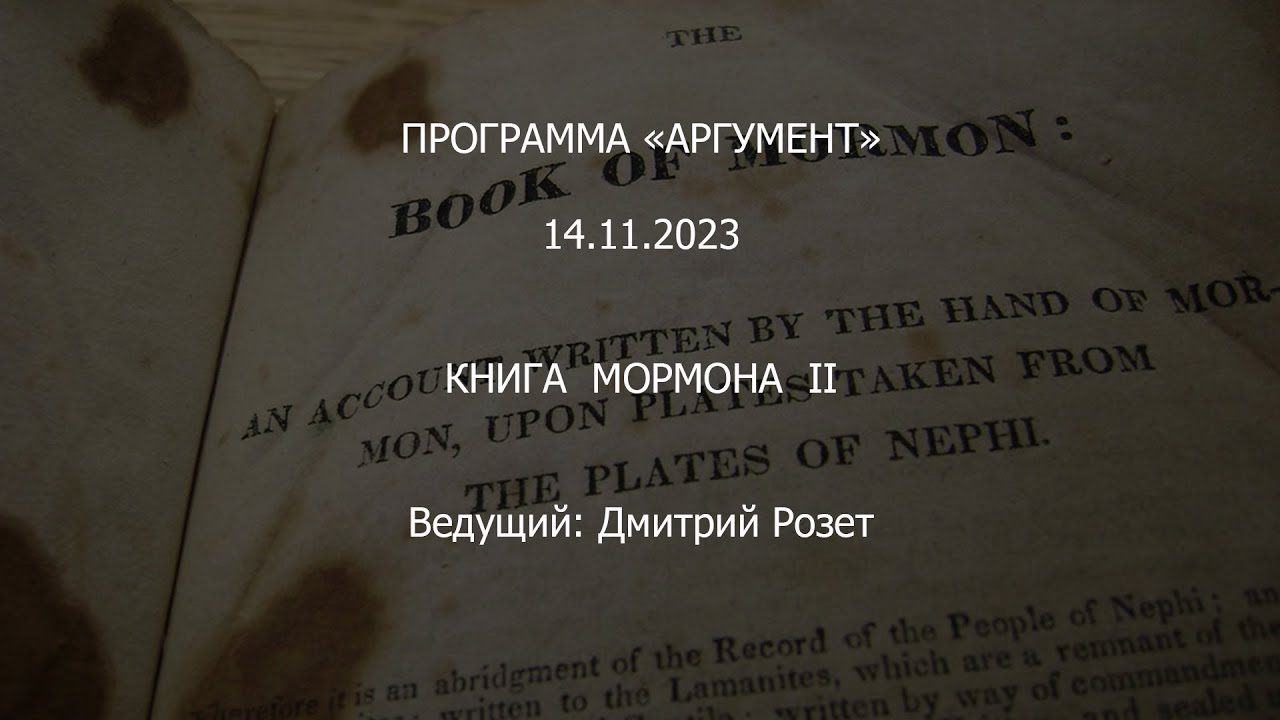 Программа «Аргумент» от 14.11.2023 Книга Мормона II