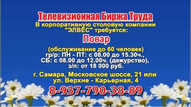 Вакансии и телефоны прямых работодателей в специализированной программе по трудоустройству "Телевизионная Биржа Труда" - г.САМАРА т/к ТВ-ЦЕНТР