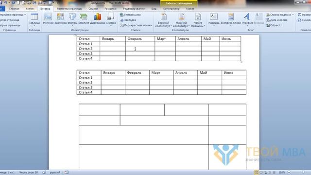 Работа с таблицами в Word