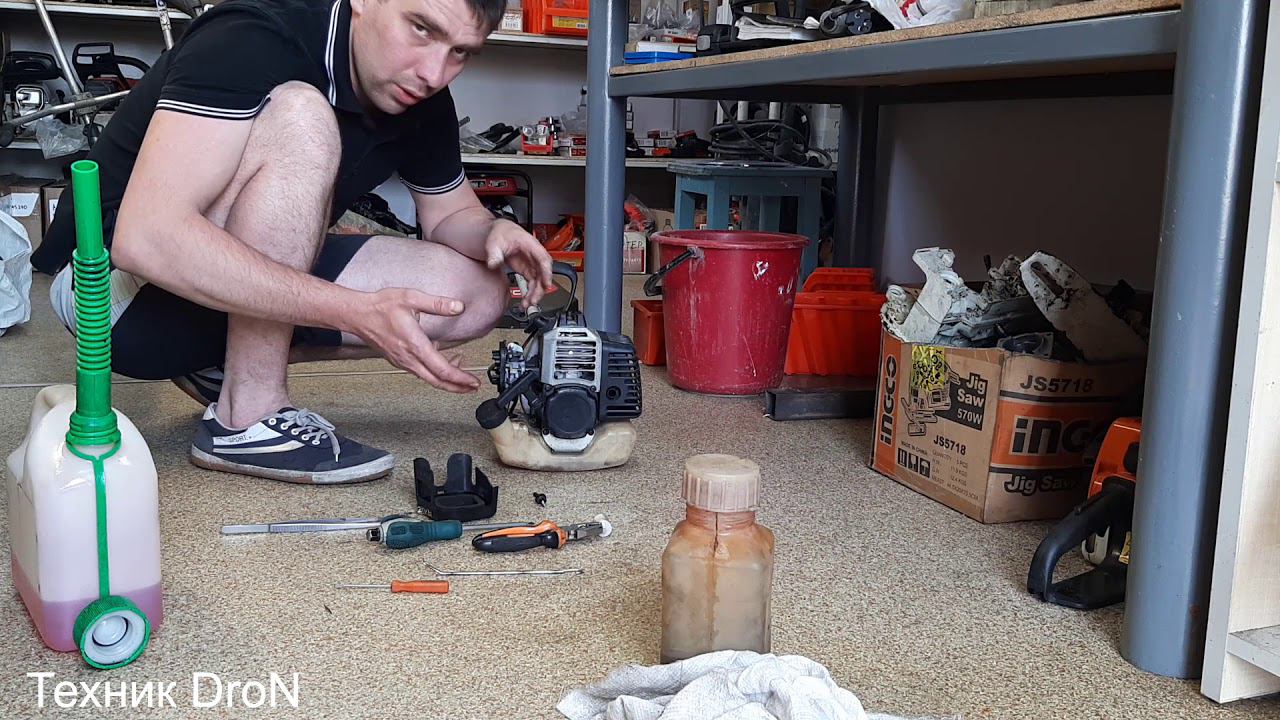 В очередном ремонте оказалась мотокоса Интерскол.Клиент говорит что коса после того как завелась работает около минуты и потом ее не завести.Как ее починить показано в данном видео.