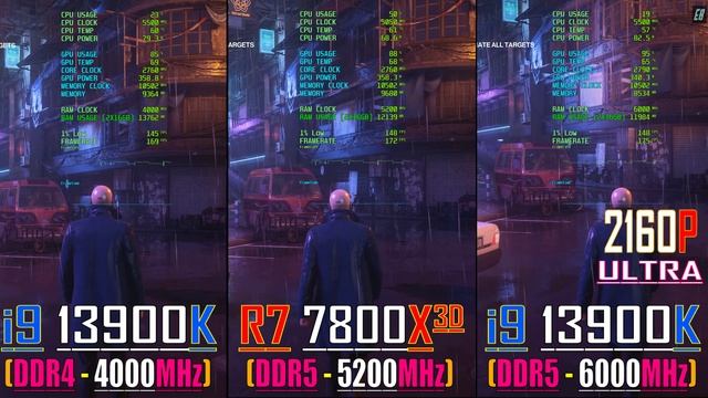 i9 13900K (DDR4 - 4000MHz) vs R7 7800X3D (DDR5 - 5200MHz) vs i9 13900K (DDR5 - 6000MHz) || 2160P ||