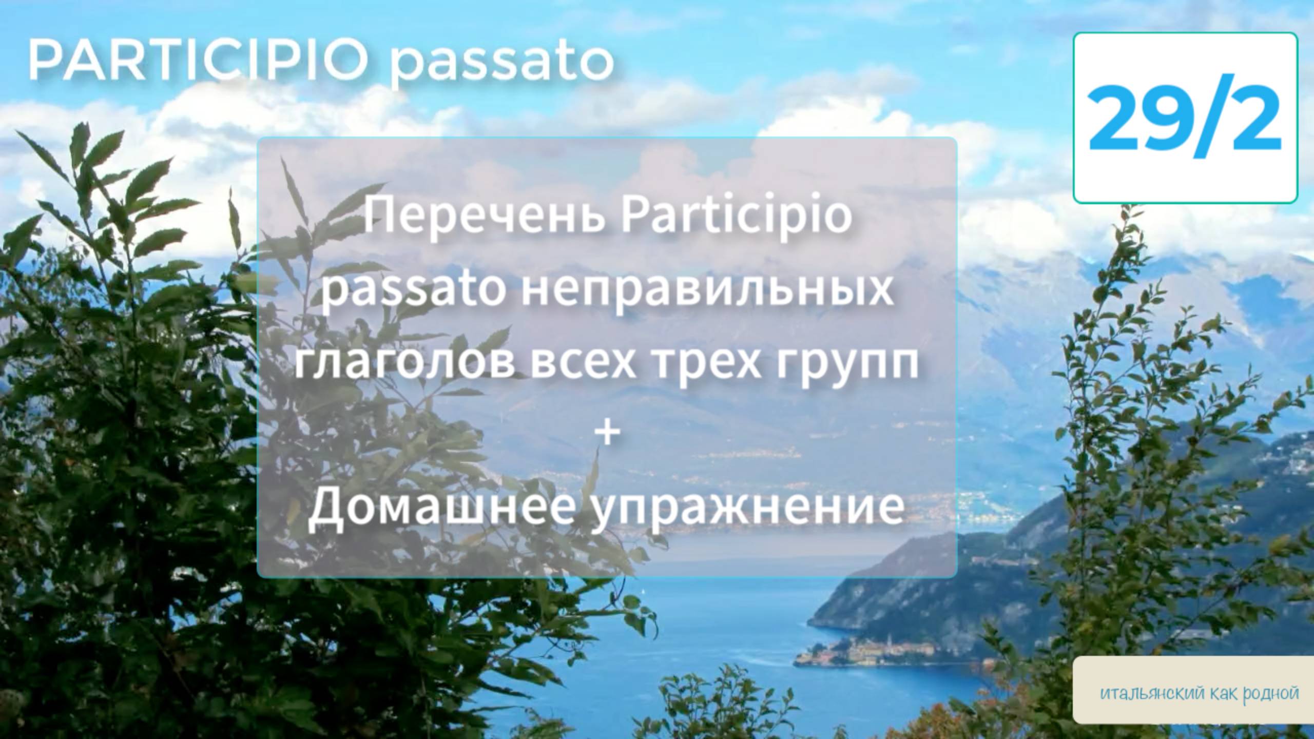 Пришло время изучить прошедшее время Passato prossimo. Вы увидите много примеров и дословный перевод с объяснениями каждого предложения. Вы получите перечень неправильных глаголов с образованным от них Participio passato, необходимого для формирования Passato prossimo. В конце видео я дам упражнение для самостоятельного закрепления темы. Я – профессиональный переводчик и преподаватель итальянского языка как иностранного. Имею Сертификат Университета г. Сиена (Италия), подтверждающий самый высокий уровень знания итальянского языка. В моих видеоуроках отражается опыт 20 лет жизни в Италии и около 30 лет профессиональной деятельности. Обучаю итальянскому любого уровня. Могу подготовить вас к сдаче экзаменов по итальянскому языку как в России, так и в Италии. Еще больше материала и домашние задания с проверкой можно получить на сайте Boosty – https://boosty.to/irinario Мой персональный сайт: https://italianokakrodnoi.ru/ VK: https://vk.com/italianokakrodnoi_gruppo email: info@italianokakrodnoi.ru