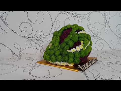 Оригинальный подарок велосипедисту - вело шлем из цветов. Фигурки из живых цветов - https://ranunculus.ru/igrushki-iz-tsvetov/