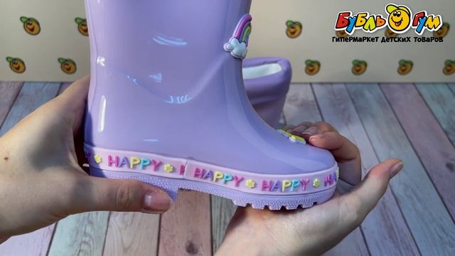 335501 Сапоги водонепроницаемые Pasito с котиком птичкой и бабочкой лиловые