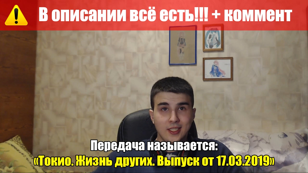 Извините, что сам толком не посмотрел, но работы много (она уже запланирована), нужно не терять импульс, однако передача явно интересная, вопросов по достоверности у меня пока к ней нет. Ссылка на первый канал: https://www.1tv.ru/shows/zhizn-drugih/vypuski/tokio-zhizn-drugih-vypusk-ot-17-03-2019 Название передачи: Токио. Жизнь других. Выпуск от 17.03.2019