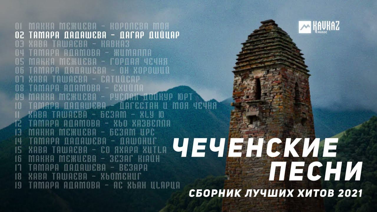 ЧЕЧЕНСКИЕ ПЕСНИ | СБОРНИК ЛУЧШИХ ХИТОВ 2021 00:00 01 Макка Межиева - Королева моя 05:34 02 Тамара Дадашева - Дагар дийцар 09:26 03 Хава Ташаева - Кавказ 14:37 04 Тамара Адамова - Жималла 19:05 05 Макка Межиева - Гордая Чечня 24:04 06 Тамара Дадашева - Он хороший 28:31 07 Хава Ташаева - Сатийсар 32:28 08 Тамара Адамова - Ехийла 36:54 09 Макка Межиева - Руслан дойкур юрт 42:12 10 Тамара Дадашева - Дагестан и моя Чечня 46:13 11 Хава Ташаева - Безам - хlу ю 50:32 12 Тамара Адамова - Хьо хазвелла 54:44 13 Макка Межиева - Безам ирс 59:02 14 Тамара Дадашева - Дашониг 1:04:25 15 Хава Ташаева - Со яхара хитlа 1:09:41 16 Макка Межиева - Зезаг к1айн 1:14:39 17 Тамара Дадашева - Везара 1:18:57 18 Хава Ташаева - Хьомениг 1:23:15 19 Тамара Адамова - Ас хьан цlарца