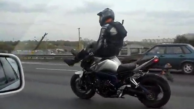 Мастерски управляет свои железным конём :)