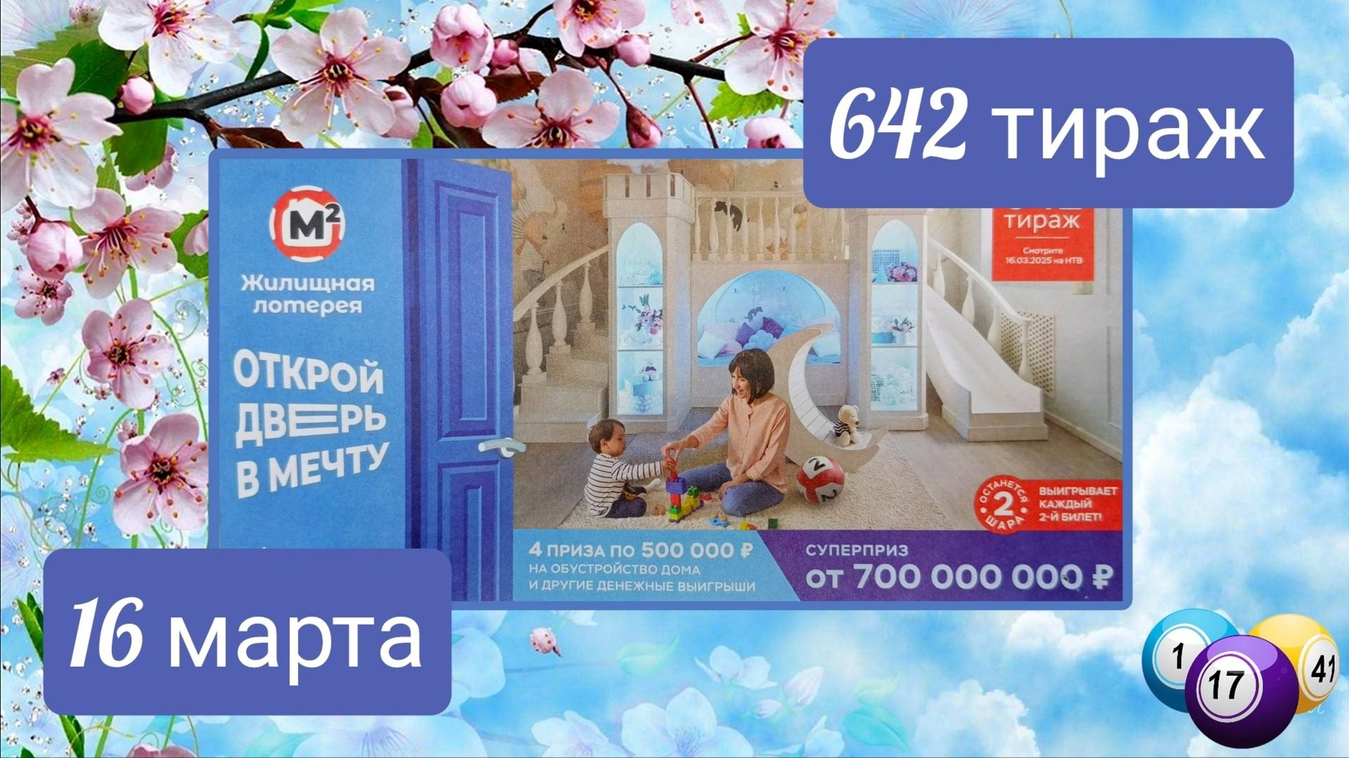 ЖИЛИЩНАЯ ЛОТЕРЕЯ 642 тираж 16 марта. Проверить билет под музыку с цифрами.