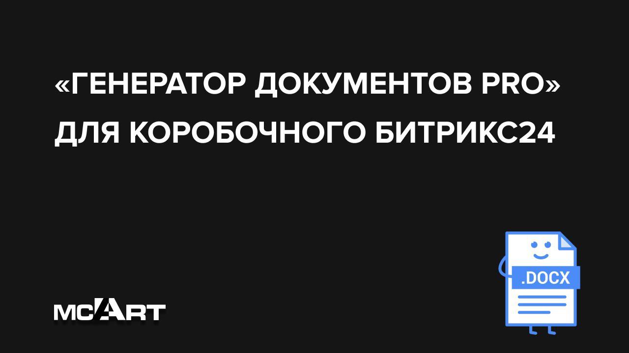 Генератор документов формирует файлы с расширением .docx на основе созданного пользователем шаблона, подставляя в поля текстовые, табличные данные и изображения. Решение в Маркетплейсе: https://marketplace.1c-bitrix.ru/solutions/mcart.gendoc/ Многие пользователи Битрикс применяют в своей ежедневной работе Дизайнер бизнес-процессов. Шаблонные бизнес-процессы весьма облегчили работу, но формирование однотипных файлов вручную после отработки бизнес-процесса всё равно затягивало время выполнения поставленной задачи. Например, такие типовые документы как коммерческое предложение или договор, приходилось вручную наполнять повторяющимися данными — названия компаний, фамилии сотрудников, реквизиты и т.п. Заполнение таких документов — еще не самое трудоёмкое занятие, а вот вставка таблиц с множественными полями и столбцами — это уже задача посложнее. Читать подробнее об этом решении на сайте разработчика: https://www.mcart.ru/blogs/generator-dokumentov/