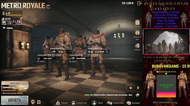 Поддержка канала: https://www.donationalerts.com/r/aviavilon Кто с Украины вот номер карты: 5168752018312499 Мой Телеграмм Канал: https://t.me/aviAVILON Мой магазин в телеграмм: https://t.me/+Qfmhqv029_c5OGJi Чат в телеграмм для подписчиков: https://t.me/+7qNsbiao77tmNTFi Мой ID по метро : 51718698392 Моя основа ID: 5184453525. ?Немного о стримере? Зовут - Андрей Играю - iPad Pro 2021 года 12.9 Возраст - 31 годиков Город - Москва Семейное положение - женат Активная игра - с 3 сезона Метро играю с 1 сезона Дети - нет ??:УСЛУГИ КАНАЛА: ?? ?Музыка - 25 рублей? ? 2 Катки со мной - 150 рублей? ?Локалка платная (два места) - 200 рублей? ?Сопровождение в радейку - 200 рублей? ?Полное сопровождение - 400 рублей? ?VIP-Сопровождение -600 рублей? ?Забрать лут - 333 рубля? ?Челлендж - 333 рублей? ?ЧЕЛЕНДЖ НА ВЕСЬ СТРИМ 3333? ?Модерка - 10.000 рублей? ?Модерка на сезон - 2500 рублей ? ?Модерка на неделю - 500 рублей? ?Заскамить модерку - 1000 рублей (на 2 стрима)? ?Сбрить бороду - 15.000 рублей? ?Взорваться в катке - 666 рублей? ?Отправить тимейта в лобби (взорвать) - 333 рублей? ?Продать весь инвентарь - 8888 рублей? ?Игра со мной на весь стрим - 1000 рублей? ?Музыкальный стрим - 1500 рублей? ?Продлить стрим на час - 999 рублей? ?Катка с вашей командой (стример заходит в вашу команду!) - 250 рублей? ?Катка с женским коллективом - 400 рублей? ? Услуги на 5 карту? ? Сопровождение в радейку на 5 карту- 444 рублей? ?Полное сопровождение на 5 карту -777 рублей? ?VIP-Сопровождение на 5 карту -888 рублей ? ?VIP-ЗОЛОТО Сопровождение на 5 карту -1399 рублей ? ?VIP-ЗОЛОТО СФ или КБ Сопровождение на 5 карту -1799 рублей ? ?Открыть премиум броня за 2 000 000- 125 рублей? ?Открыть премиум оружие за 1 600 000- 100 рублей? Шмот можно купить в моем магазине телеграмм? Правилами чата запрещается: реклама, оскорбления, маты, флуд, капс, спам. Действие модератора не обсуждаются❗️?