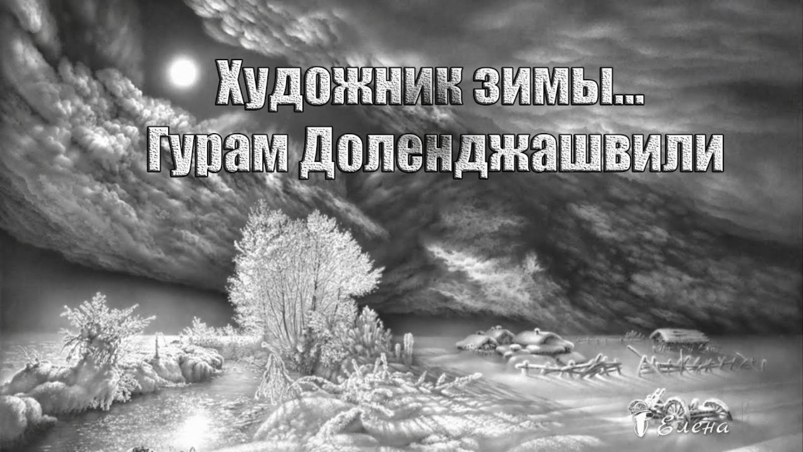 ~ * ~ Пронизанный блеском снег, который хочется пощупать, отраженная в облаках луна, слепящая своим светом, потрясающей красоты и дивности природа, в кою так и тянет окунуться… особенно в такое знойное лето... Именно такие ощущения вызывает просмотр изумительных картин Гурама Доленджашвили – мастера графики простым карандашом. Его искусство – уникально, его картины простым карандашом – ювелирны, а созданные на полотнах эффекты – доведены до фантастики! В отличие от других мастеров этого жанра, Доленджашвили использует тонально-живописную технику. Он творит еле заметными штрихами на огромного формата бумаге, и делает сие так, что и наиболее искушенный, и весьма дотошный зритель высоко ценит столь тончайшую работу. Ведь даже рассматривая фрагменты его картин с максимальным приближением, отмечается сверх-ювелирная точность в каждом штрихе графитного карандаша, в каждой детали, отраженной на холсте. К слову, поражает еще и диапазон, который Гурам Доленджашвили успевает охватить в своих картинах простым карандашом – от великого неба до мельчайших снежинок в сугробе, от обширных пейзажей до прожилок на кукурузном листе, от космоса и Луны до крошечных трещинок на посуде. И вся эта красота существует одновременно, забрасывая изумленного зрителя то в микро-, то в макромир. Современники нарекли Гурама Доленджашвили «художником зимы», а его картины – живописью особого рода. Все его рисунки, нарисованные простым карандашом (не ведая заранее, что его таинственные пейзажи весьма конкретны), можно было бы отнести к фантастическому реализму. Картины художника уже давно разлетелись по всему миру. Его творения нашли место в Государственном музее Пушкина и в Третьяковской галерее, они выставлены на родине мастера и в коллекциях ведущих мировых музеев. Сам же Г. Доленджашвили признан заслуженным художником Грузии и назван почетным академиком Академии художеств России. "Русская красавица зима" Сергей Аверьянов Видеомонтаж Елены Короед Для просмотра и прослушивания с наилучшим изображением и звуком выставляем на шестеренке справа внизу настройку 1080р .................................................................................................................................